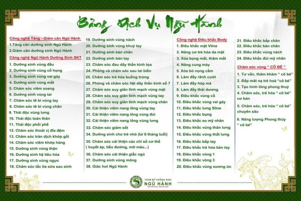 A/ Thương hiệu thẩm mỹ dưỡng sinh Ngũ hành THẨM MỸ NGŨ HÀNH DƯỠNG SINH[...]