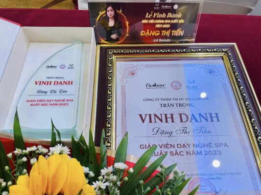 20/11 năm nay thật đặc biệt. Vinh dự nằm trong Top 15 giáo viên xuất sắc – được nhận bằng và kỷ niệm chương vinh danh “Giáo viên ngành Spa xuất sắc năm 2023” từ NGƯT-TS Phan Hoàng Dũng – Hiệu Trưởng Trường Bách Nghệ TP. Hồ Chí Minh.