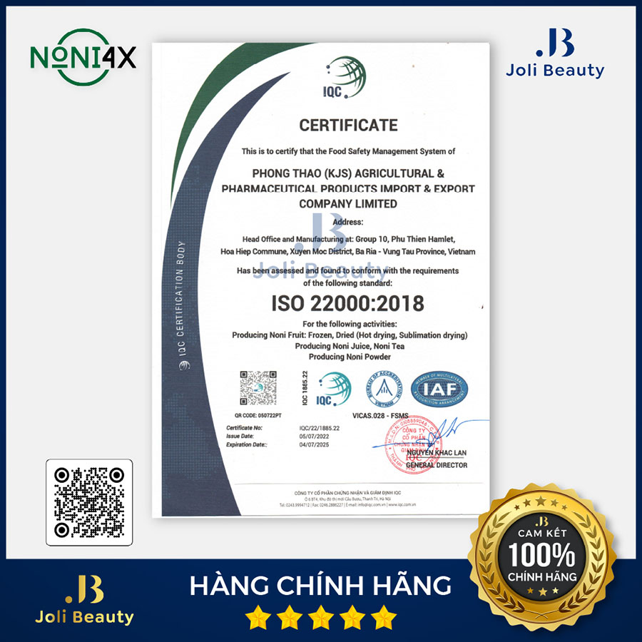 - Nước cốt nhàu cô đặc NONI4X đạt tiêu chuẩn chất lượng hàng đầu