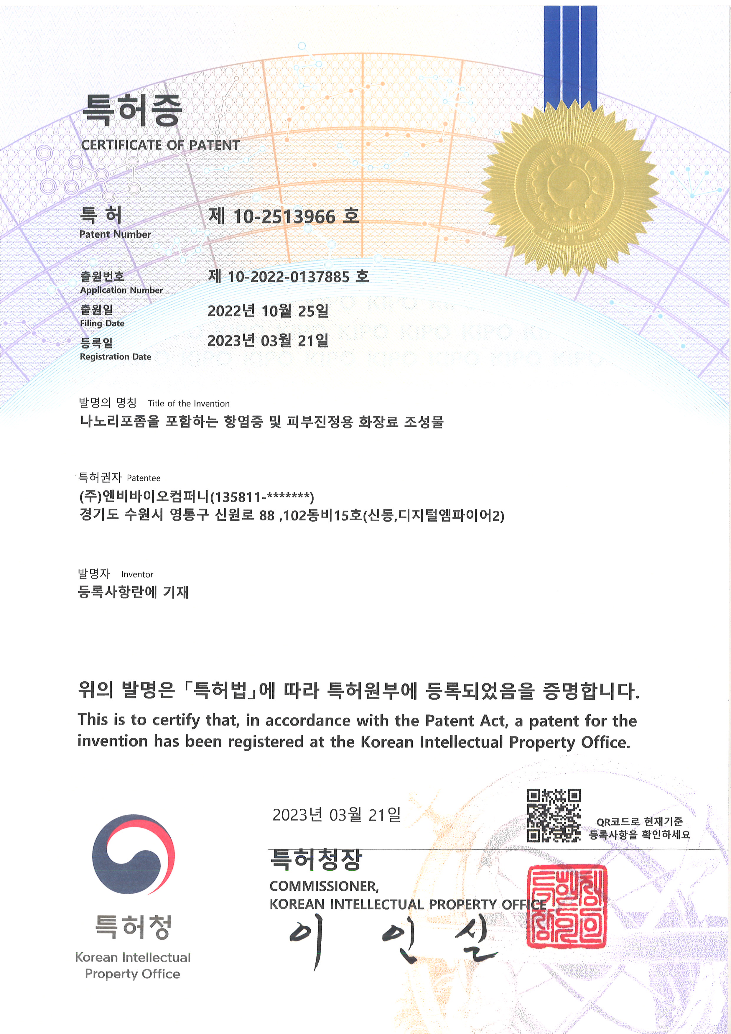 Thông tin sản phẩm: Đạt 1 bằng sáng chế: Phức hợp thành phần chứa công nghệ Nano Liposome