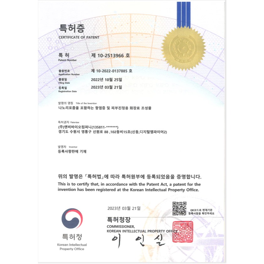 Thông tin sản phẩm: Đạt 1 bằng sáng chế: Phức hợp thành phần mỹ phẩm chống viêm và làm dịu chứa