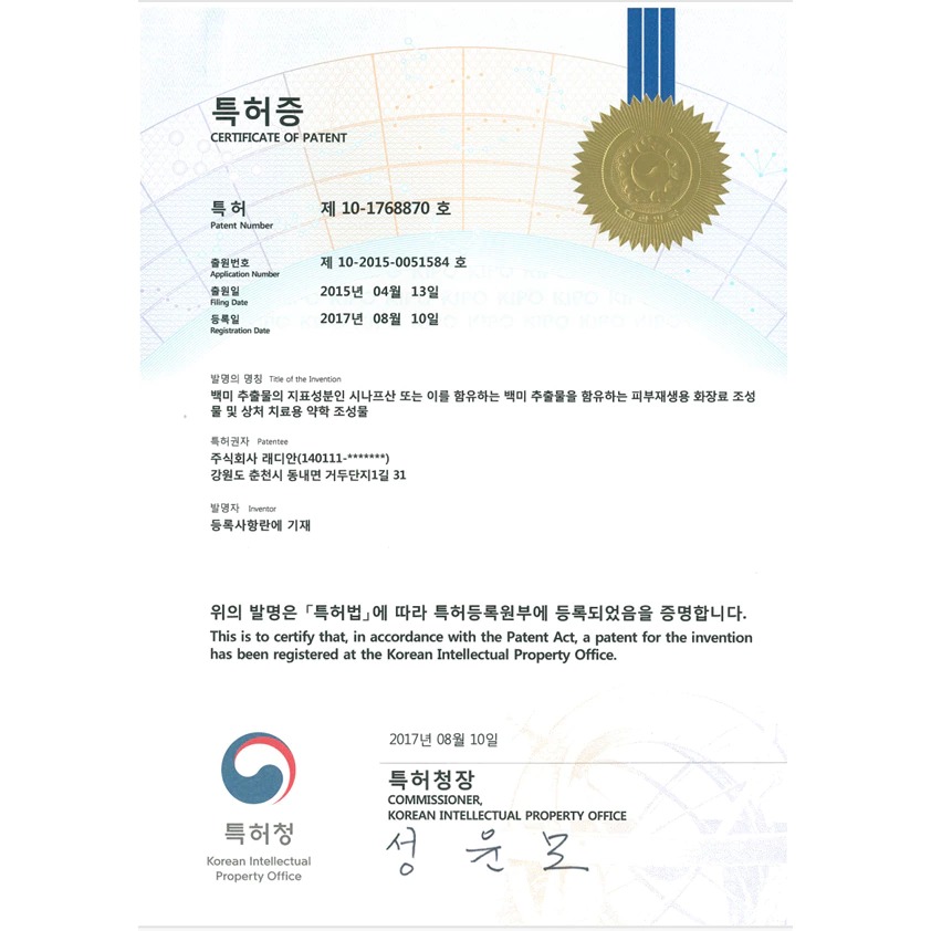 Thông tin sản phẩm: – Đạt 3 bằng sáng chế: Phức hợp gồm chiết xuất gạo và hợp chất hữu cơ nhóm